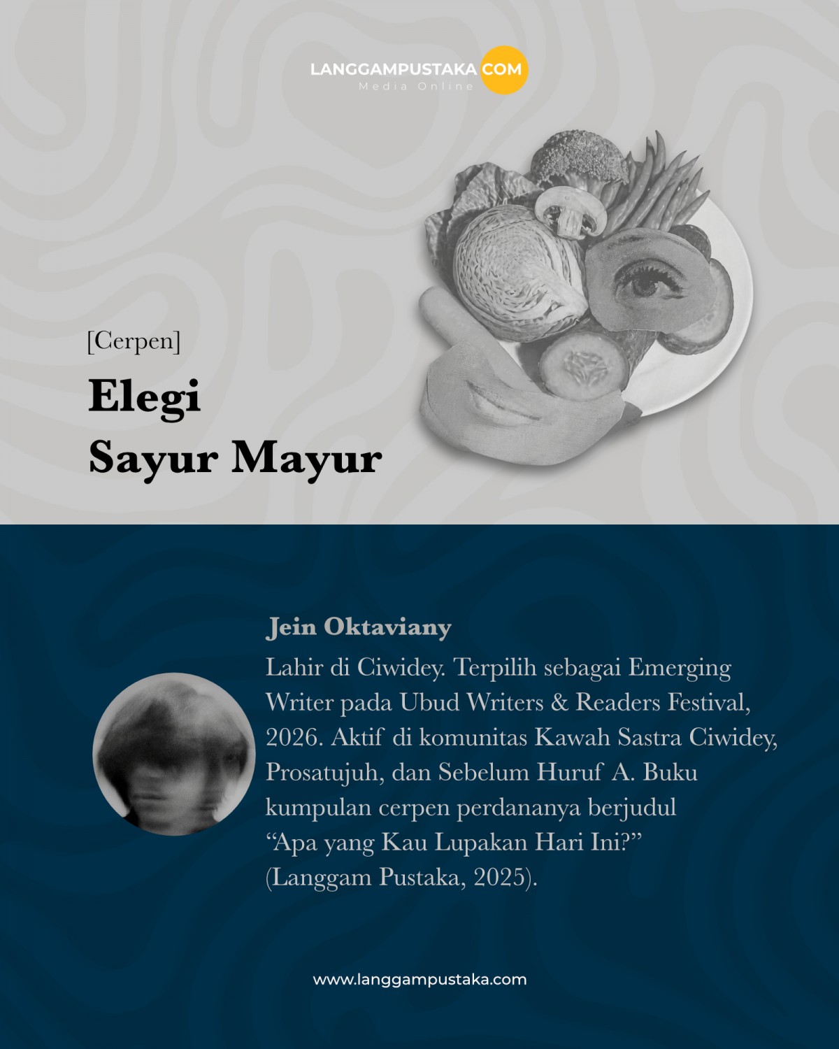 “Aku tahu semua tentangmu. Kecuali kenapa kau benci sayur,” lanjut sang perempuan. Mau tak mau, kau kembali duduk. Tiba-tiba kau merasa was-was dalam hati, apa perlu kau ceritakan segalanya pada perempuan itu. Rahasia dan elegi yang kau rasa hanya karena sayuran?