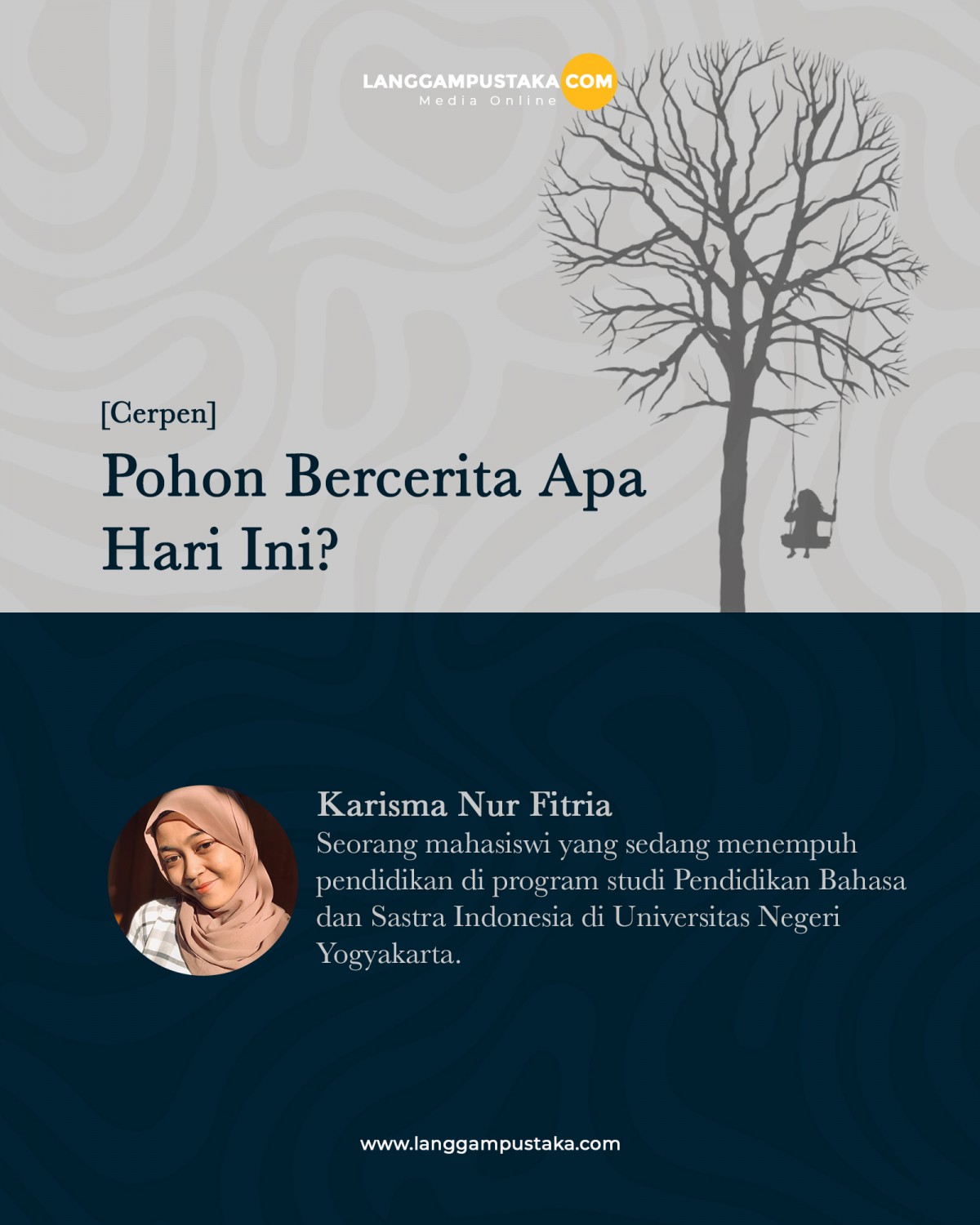 “Aku punya sebuah cerita dari, Pohon untukmu.” Aku tidak mau menyangkalnya, aku akan simak baik-baik cerita Pohon ini dari Zizu.