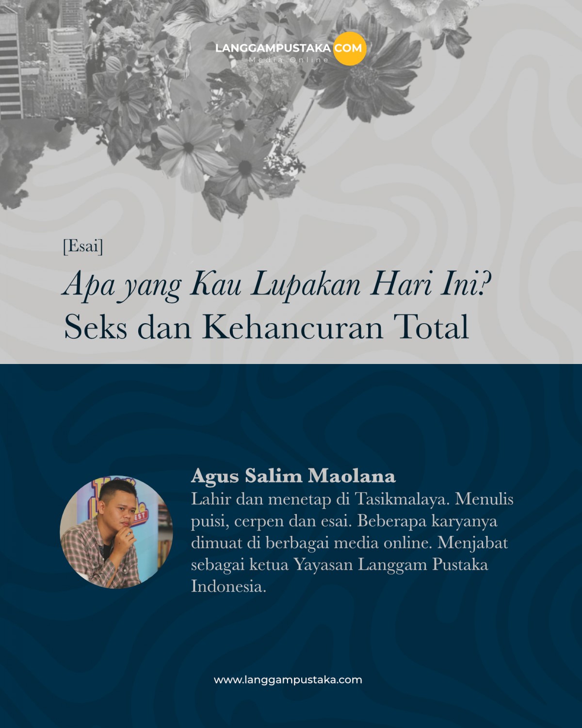 Agus Salim Maolana, lahir dan menetap di Tasikmalaya. Menulis puisi, cerpen dan esai yang sudah banyak dimuat di berbagai media. Menjabat sebagai ketua Yayasan Langgam Pustaka Indonesia.