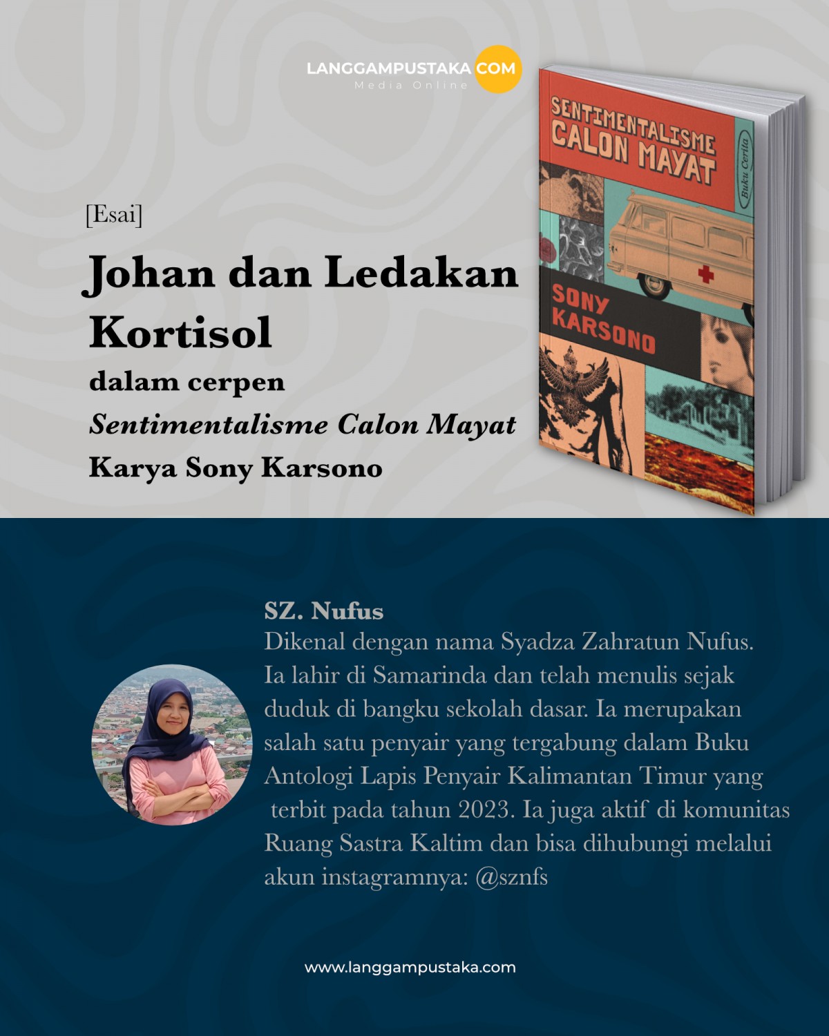 SZ. Nufus, dikenal dengan nama Syadza Zahratun Nufus. Ia lahir di Samarinda dan telah menulis sejak duduk di bangku sekolah dasar. Ia merupakan salah satu penyair yang tergabung dalam Buku Antologi Lapis Penyair Kalimantan Timur yang terbit pada tahun 2023. Ia juga aktif di komunitas Ruang Sastra Kaltim dan bisa dihubungi melalui akun instagramnya: @sznfs