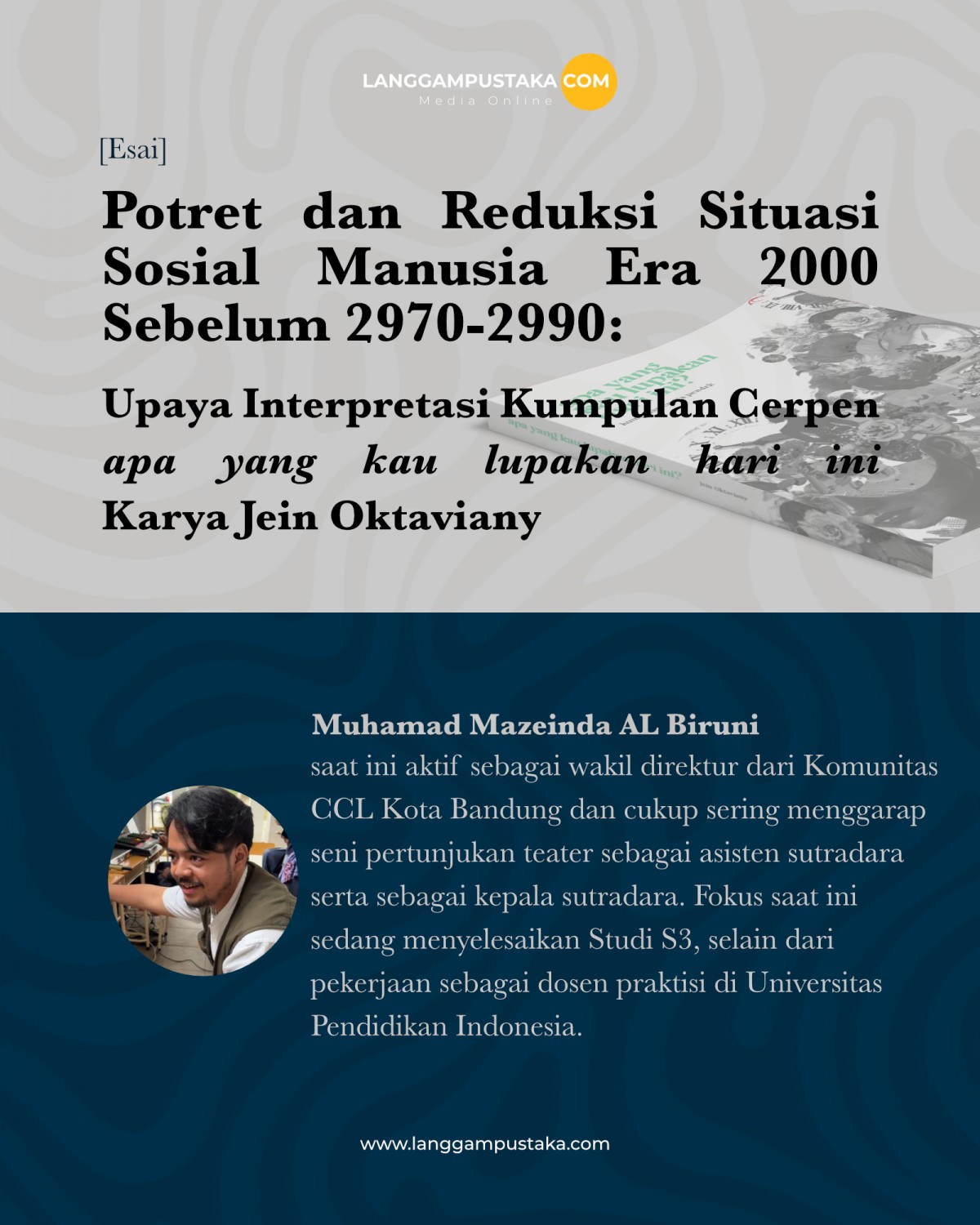 Membaca karya Jein Oktaviany yang akhirnya sudah merilis kumpulan cerpennya dengan judul Apa yang Kau Lupakan Hari ini (2025), membuat saya teringat cukup lamanya proses Jein dalam proses memproduksi kumpulan cerpennya sendiri. Mungkin sejak tahun 2023 atau 2024? Atau lebih lama dari itu, saya merasa setiap pertemuan dengan Jein dan menanyakan kapan rilisnya kumpulan cerpen ini karena tidak sabar untuk membaca. Hanya saja Jein beberapa kali terlihat ragu, entah karena dari kumpulan cerpennya atau bagaimana Jein menghadapi konstruksi realitas sosial yang cukup berat dalam menghadapi tantangan sebagai cerpenis muda. Singkat kata setelah saya membaca kumpulan cerpennya, saya memahami bahwa keraguan dan mungkin juga kerisauan yang dirasakan Jein merupakan representasi dari cerpen-cerpen Jein itu sendiri.
