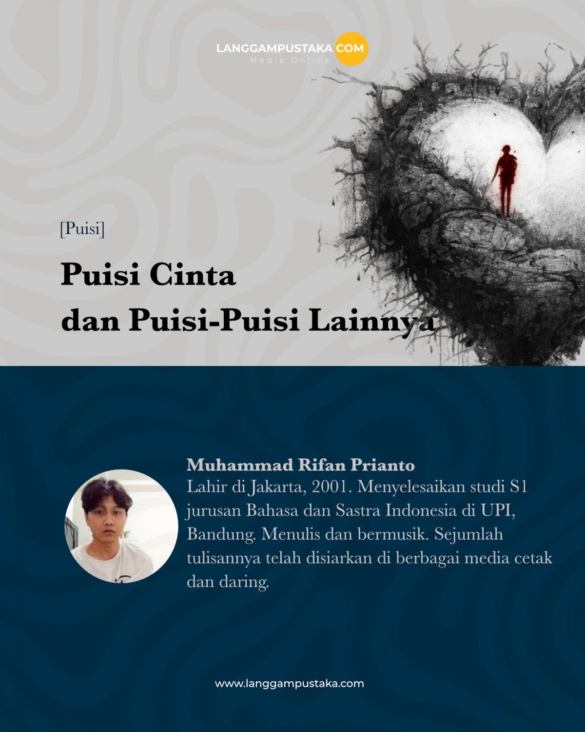 Muhammad Rifan Prianto, lahir di Jakarta, 2001. Menyelesaikan studi S1 jurusan Bahasa dan Sastra Indonesia di UPI, Bandung. Menulis dan bermusik. Sejumlah tulisannya telah disiarkan di berbagai media cetak dan daring. Dapat dijumpai melalui Instagram, @muh_rifaan.