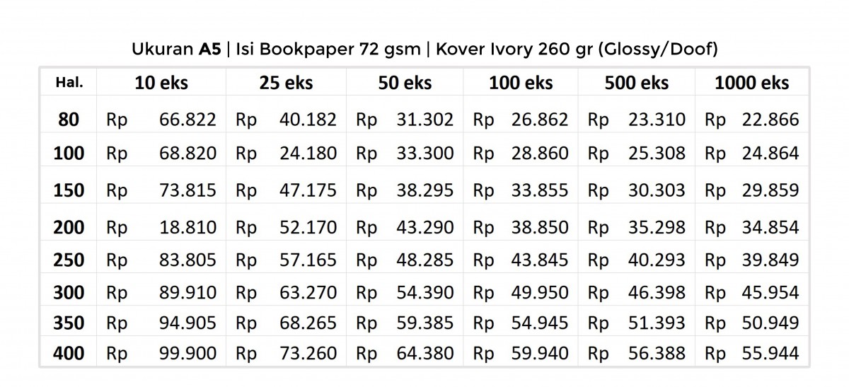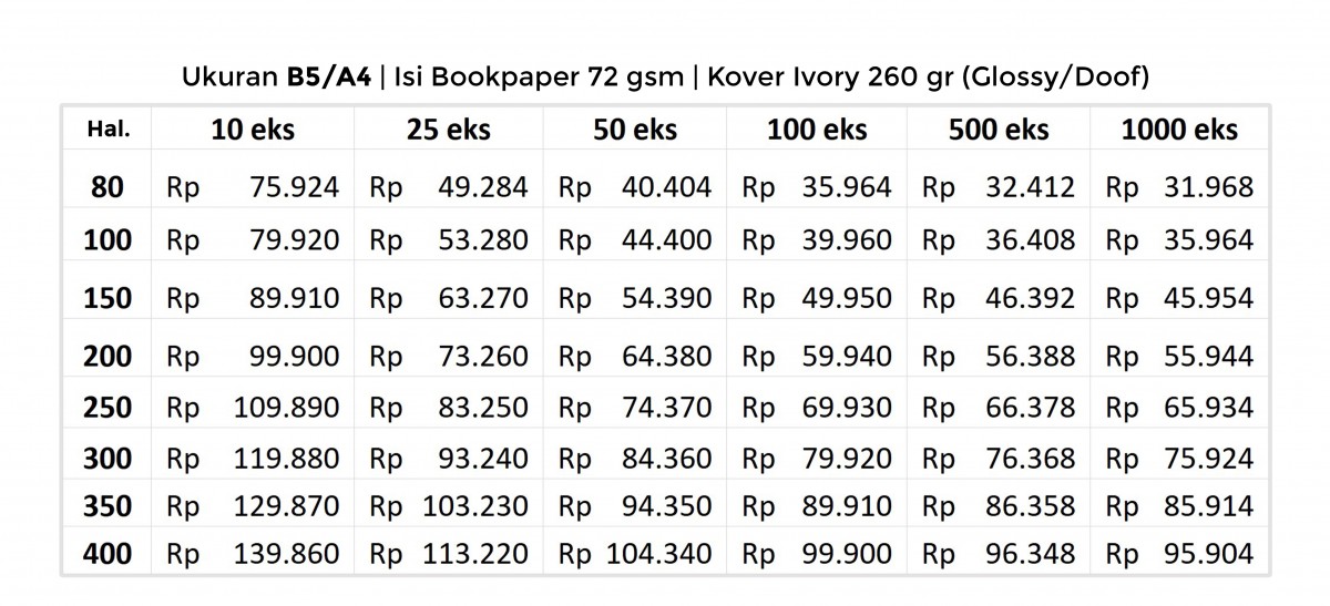 a. Gratis (jika dicetak di Langgam Pustaka).